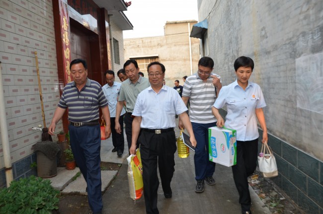 随后,施文星来到村东头的深水井房和废弃的造纸厂进行了实地查看,走访慰问了6户贫困户和5户低保户,并给他们送去米面油等慰问品。在每一个贫困户家里,施文星都耐心地同他们拉家常,嘘寒问暖,了解家里几亩地、几口人、多大年龄、从事什么职业、在什么地方打工、一年有多少收入,孩子在那上学等,详细了解贫困原因、思想状况和生活情况。鼓励他们要树立脱贫的信心,依靠国家的好政策,走上致富之路。