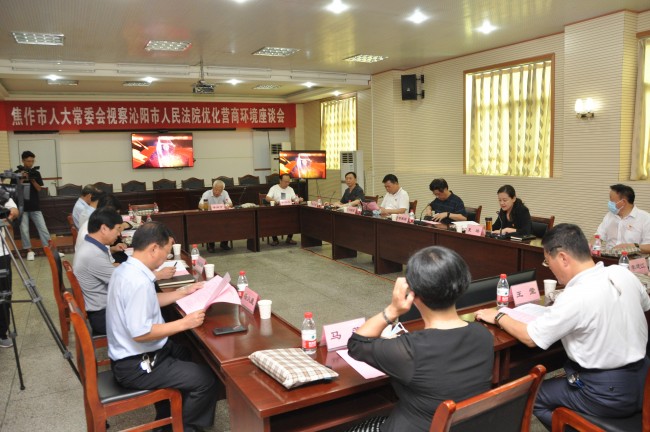 座谈汇报会上,视察组一行观看了沁阳法院优化营商环境工作汇报片;