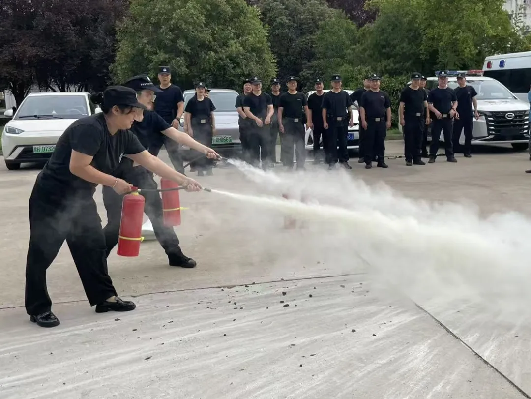在实操环节中,全体法警及安保人员分组进行灭火器实战演练。“一提、二拔、三握、四压”,大家严格按照操作规范,近距离对着火点喷射,亲身感受灭火过程,切实将理论知识转化为实操能力。