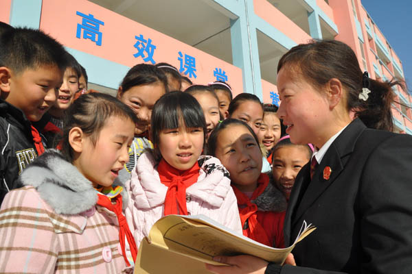 11月30日下午,河南省沁阳市法院的法官结合案例在辖区灯塔街小学向小朋友讲解如何提高安全防范常识 。针对近期校园发生的踩踏事件和提高广大中小学校学生的自我保护能力,连日来,该院组织40多名法官深入到辖区所有的学校通过采取担任法制副校长、开展专题讲座、举办墙报板报等多种形式,对师生开展安全知识教育,进一步增强师生、儿童的自我保护能力。有效预防和制止安全事故及其他针对学校师生伤害案件的发生,维护校园的安全与和谐